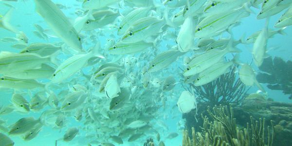 Snorkeling at our very own Sint Maarten Snorkeling Park. Lots of fishes to see and feed!